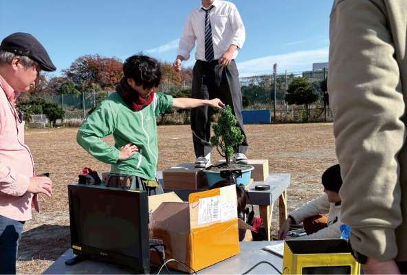 VFX特撮ブースでは、作品『スポンジ人間』の撮影で実際に使われた白山校舎のジオラマを展示します。このジオラマを使った“強制遠近法”フォトスポットでは、自分が巨大化したように見える写真を手軽に撮影でき、特撮ならではの視覚トリックを体験できます。さらに、もう一つの作品『折り鶴』で使用された、折り鶴を実際に飛ばすギミックも公開予定。映像がどう作られているのか、その裏側を間近で知ることができる貴重なブースです。特撮の発想力と技術力を存分に味わえる空間に、ぜひお立ち寄りください。